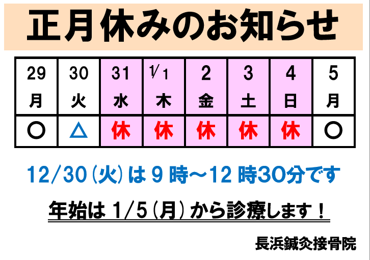 お正月休みの日程です。